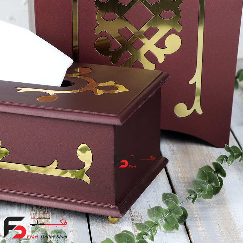 ست سطل و جا‌دستمال کاغذی چوبینه زرشکی